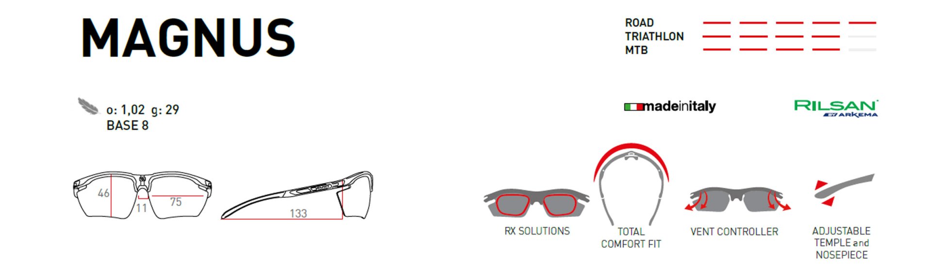 Rilsan Clear® is a high performance sustainable and bio-based polymer of 100% renewable origin, developed by Arkema. Rilsan Clear®’s key properties are lightness, chemical and fatigue resistance, flexibility and easy processability which make this material extremely durable, shock and weather resistant and perfectly suitable for sports use.
